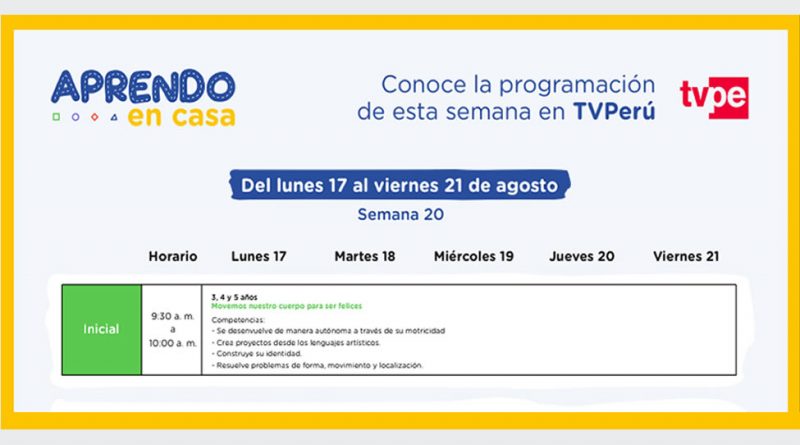 APRENDO EN CASA.- Horario Oficial de TV y Radio de la semana 20. [17 al 21 de Agosto]