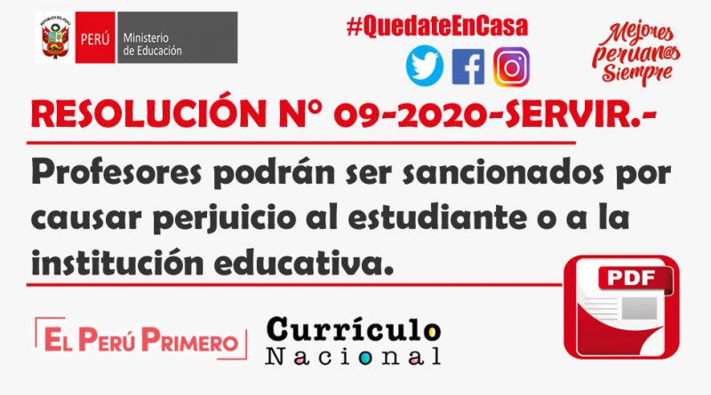 RESOLUCIÓN N° 09-2020-SERVIR.- Profesores podrán ser sancionados por causar perjuicio al estudiante o a la institución educativa.