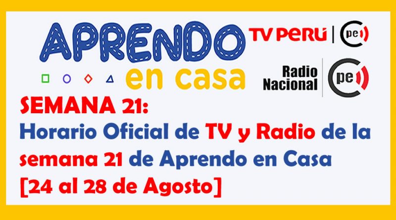 APRENDO EN CASA.- Horario Semanal de TV y Radio Completo de la semana 21. [24 al 28 de Agosto]