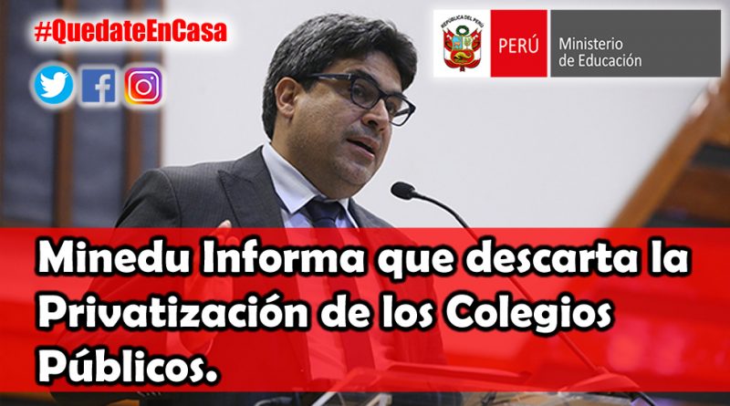 Minedu Informa que descarta la Privatización de los Colegios Públicos.
