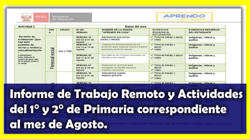 Informe de Trabajo Remoto y Actividades del 1° y 2° de Primaria correspondiente al mes de Agosto.