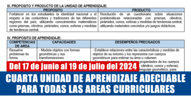 CUARTA UNIDAD DE APRENDIZAJE ADECUABLE PARA TODAS LAS AREAS CURRICULARES Del 17 de junio al 19 de julio del 2024