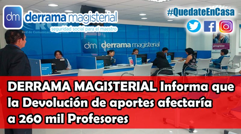 DERRAMA MAGISTERIAL Informa que la Devolución de aportes afectaría a 260 mil Profesores