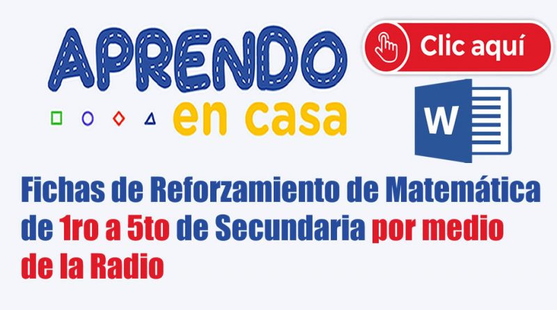 Estimados Docente, Estudiantes y Padres de Familia, en esta oportunidad les presentamos estas didácticas Fichas Adicionales de Reforzamiento del Área de Matemática de la Plataforma virtual De la Estrategia «APRENDO EN CASA» Por intermedio de la Radio de: 1ro a 5to de Secundaria – Semana- 21.
