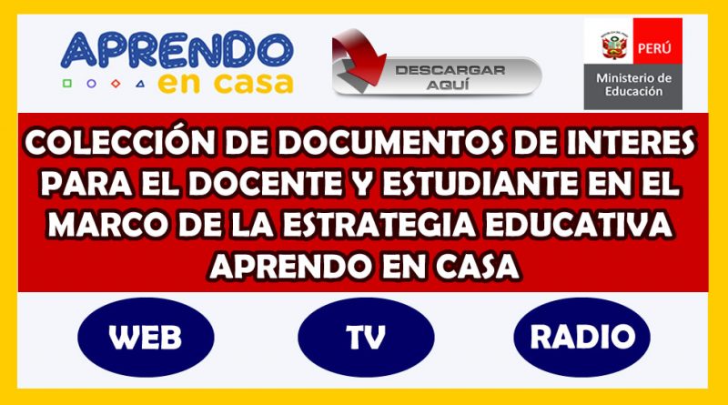 Estimados docentes en esta oportunidad les compartimos esta colección de Documentos de Interés para el Docente y Estudiante en el marco de la estrategia Educativa Aprendo en Casa los cuales nos servirán como Guías e Instrumentos para nuestra labor Pedagógica.