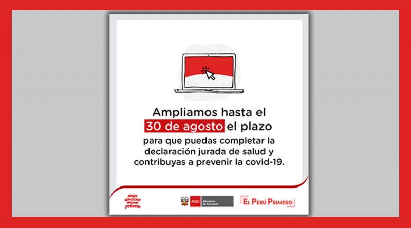 MINEDU Extiende plazo para completar la declaración jurada de salud hasta el 30 de Agosto.