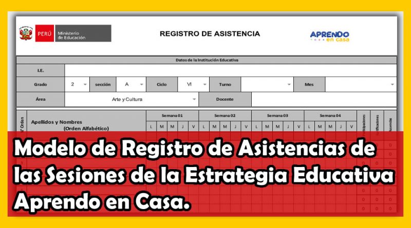 Modelo de Registro de Asistencias de las Sesiones de la Estrategia Educativa Aprendo en Casa.