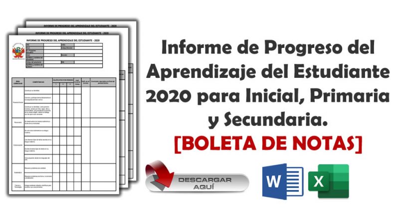 Estimados docente hoy les compartimos estos modelos de Informe de Progreso del Aprendizaje del Estudiante 2020 para Inicial, Primaria y Secundaria. [BOLETA DE NOTAS] .