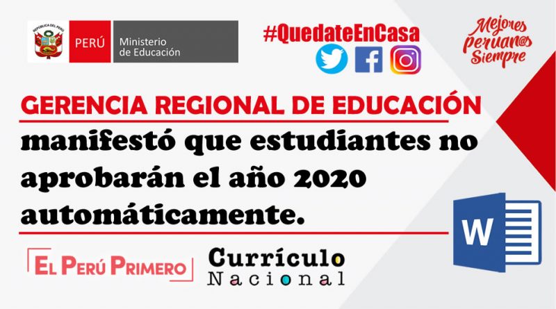 GERENCIA REGIONAL DE EDUCACIÓN manifestó que estudiantes no aprobarán el año 2020 automáticamente.
