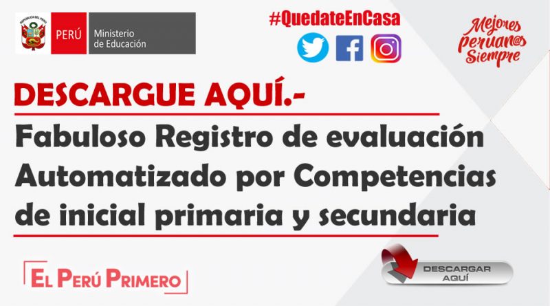 Registro de evaluación por competencias para inicial primaria y secundaria 2020