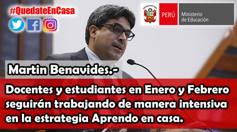 Martin Benavides.- Docentes y estudiantes en Enero y Febrero Continuarán trabajando de manera intensiva en la estrategia Aprendo en casa.