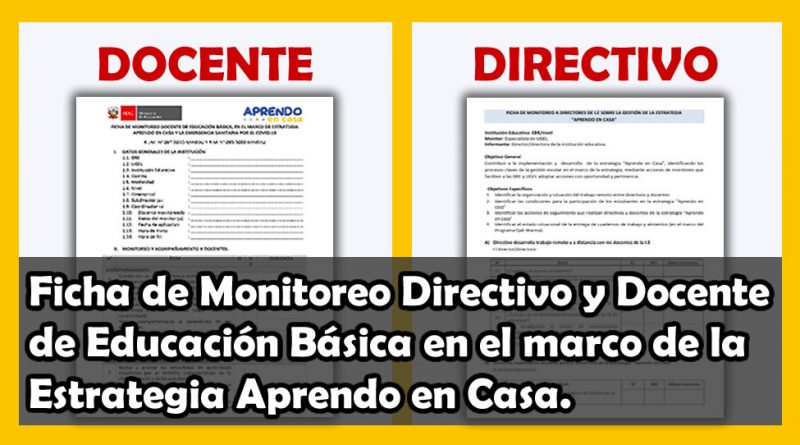 Estimados docentes en esta oportunidad les compartimos la FICHA DE MONITOREO DOCENTE en el marco de la estrategia APRENDO EN CASA, que podrán utilizarlo en sus Instituciones Educativas (Estas ficha utilizarán en el recojo de información para Semáforo Escuela):