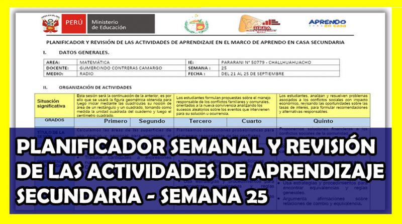 Estimado Colegas ,en esta oportunidad les compartimos este Planificador y Revisión de las Actividades de Aprendizaje en el Marco de la Estrategia Aprendo en Casa Nivel Secundaria Semana 25.