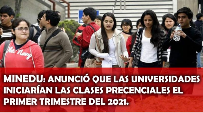 MINEDU: Anunció que las Universidades empezarían clases semipresenciales en primer trimestre del 2021.