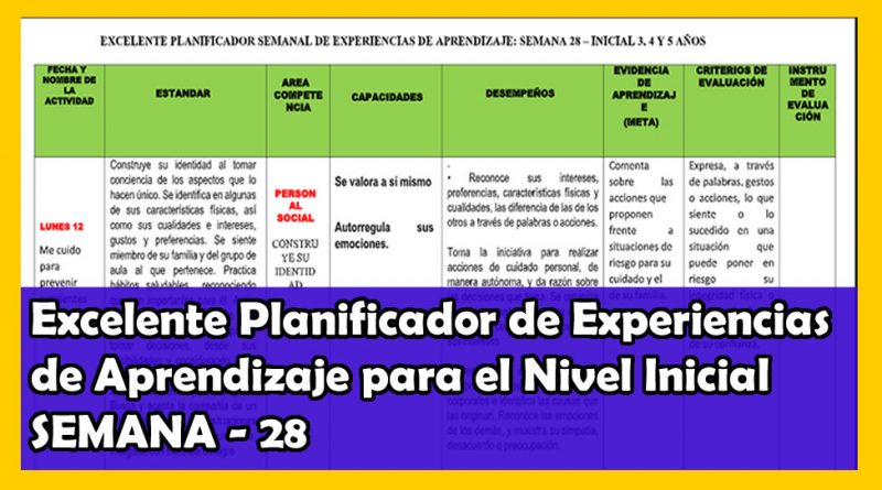 Excelente Planificador Semanal de Experiencias de Aprendizaje: SEMANA 28 – Inicial 3, 4 y 5 Años- Aprendo en Casa [WORD] – también adecuable para primaria y secundaria.