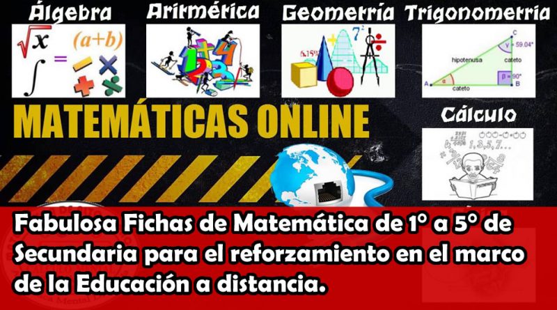 Fabuloso fichas de: Aritmética , Álgebra , Geometría trigonometría y Razonamiento Matemático de 1° a 5° grado de secundaria, para reforzar en el marco de la educación a distancia.