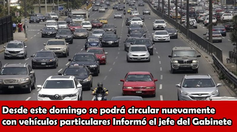 Desde este domingo se podrá circular nuevamente con vehículos particulares Informó el jefe del Gabinete Ministerial, Ántero Flores-Aráoz