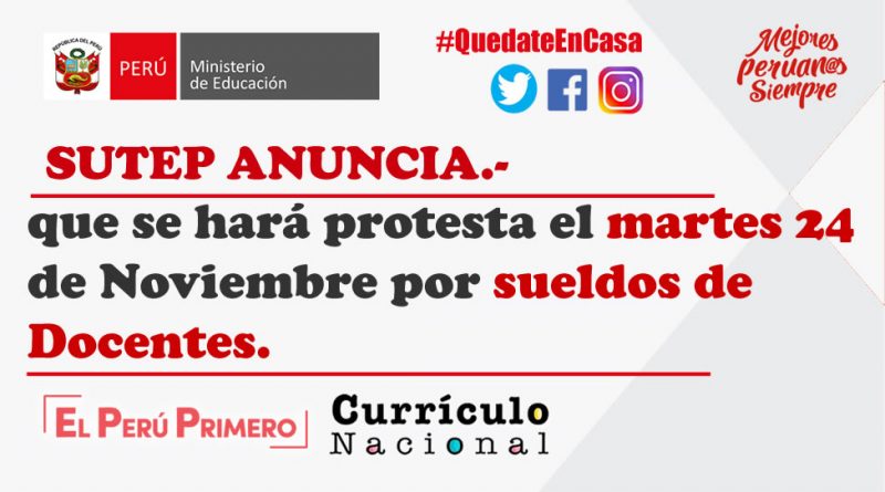SUTEP Anuncia que se hará protesta el martes 24 de Noviembre por sueldos de Docentes.