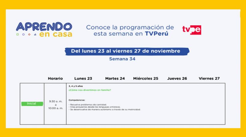 Estimados docentes hoy les compartimos los horarios de la plataforma educativa APRENDO EN CASA en sus diferente medios TV , RADIO Y WEB correspondiente a la semana 34.