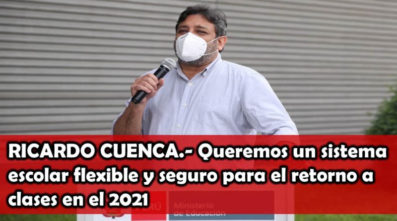 El ministro de Educación, Ricardo Cuenca, informó hoy que una de las prioridades de su gestión es tener un año escolar 2021 seguro y flexible para el retorno a clases de los estudiantes, sin riesgos de problemas de aprendizaje ni riesgos sanitarios debido al coronavirus.