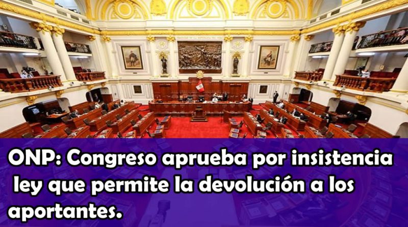 El Pleno del Congreso aprobó esta tarde por insistencia el proyecto de ley que decreta la devolución de aportes para los aportantes activos de la Oficina Nacional de Normalización Previsional (ONP) y que había sido observada por el Poder Ejecutivo.