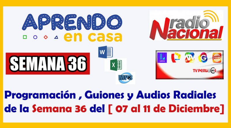 Como parte de la estrategia del Ministerio de Educación Aprendo en Casa , que viene desarrollando las clases virtuales, de tal manera se presenta la Programación Semanal de las transmisiones a través del medio Radio Nacional para la Semana 36, del Lunes 07 al Viernes 11 de Diciembre