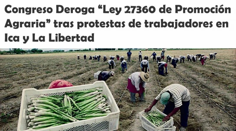 Congreso Deroga «Ley 27360 de Promoción Agraria» tras protestas de trabajadores en Ica y La Libertad