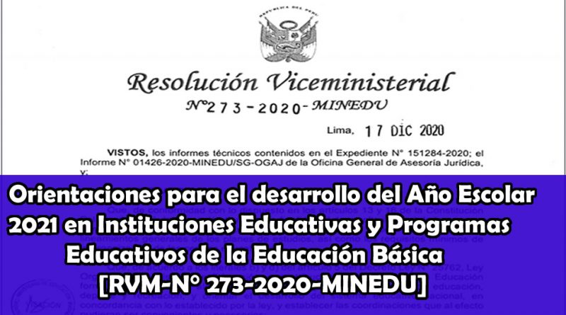 Orientaciones para el desarrollo del Año Escolar 2021 en Instituciones Educativas y Programas Educativos de la Educación Básica»[RVM-N° 273-2020-MINEDU]