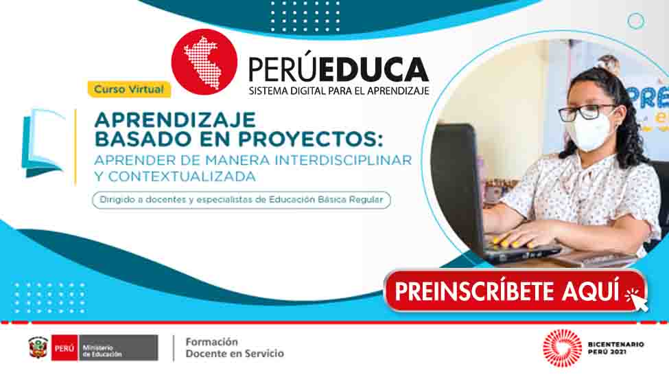 Curso Virtual “Aprendizaje basado en proyectos: aprender de manera interdisciplinar y contextualizada”, preinscribirse del 03 al 15 de junio de 2021[PeruEduca]