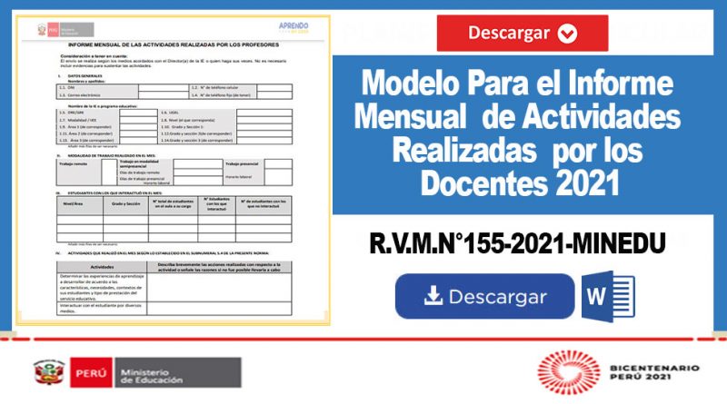 Modelo Para el Informe Mensual de Actividades Realizadas por los Docentes R.V.M.N°155-2021-MINEDU