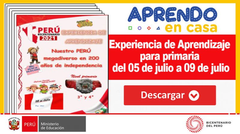 ActualidadAprendo en casaCarrera DocenteDocentesEstudiantesPrimariaRecursos Experiencia de Aprendizaje para primaria PROFE VIRTUAL 5 julio, 2021 Experiencia de Aprendizaje de 1º a 41 de primaria para 05 de julio al 09 de julio Créditos prof. Abdel. Descargar aquí