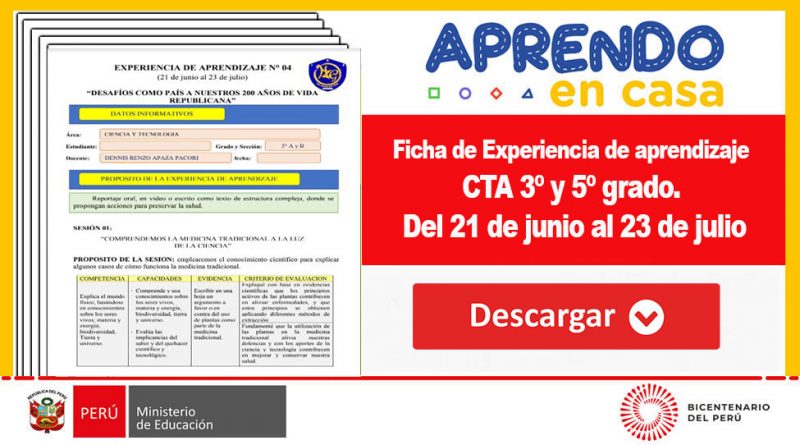 Ficha de Experiencia de aprendizaje 04. CTA 3º y 5º grado. Del 21 de junio al 23 de julio