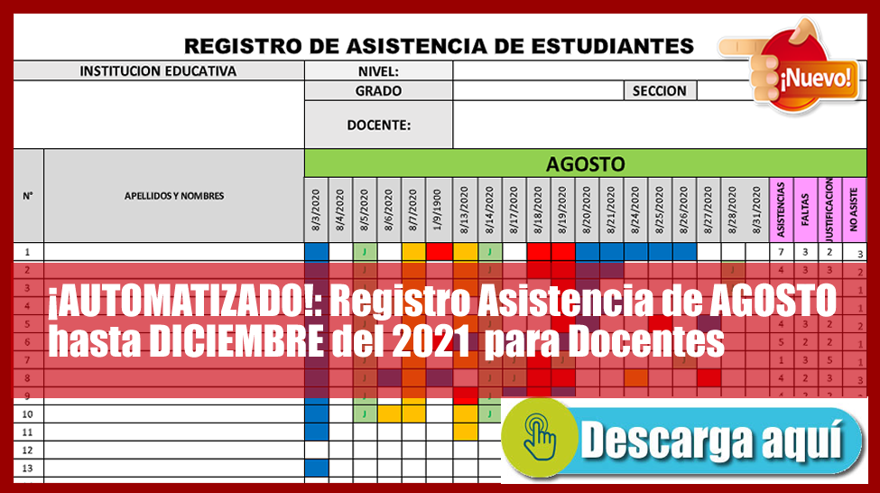 ¡AUTOMATIZADO!: Registro Asistencia de AGOSTO hasta DICIEMBRE del 2021para Docentes[ Descarga Aquí]