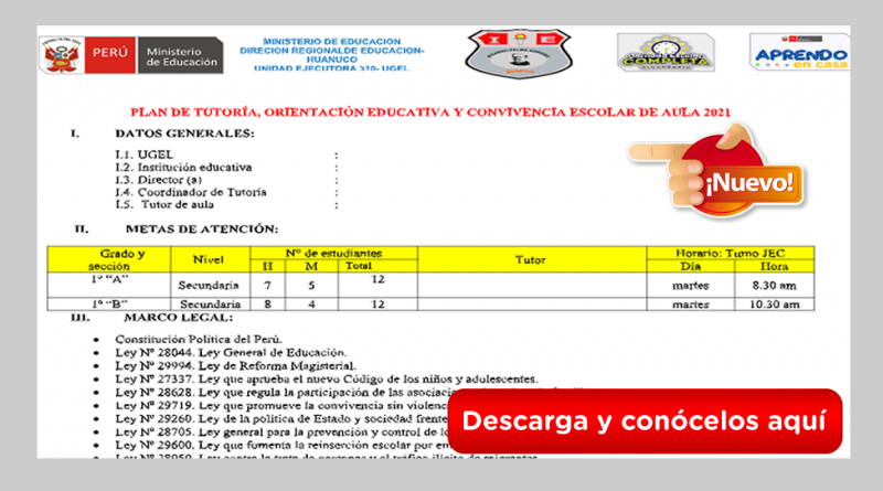 REFERENCIAL PLAN DE TUTORÍA, ORIENTACIÓN EDUCATIVA Y CONVIVENCIA ESCOLAR DE AULA 2021 [Infórmate Aquí]