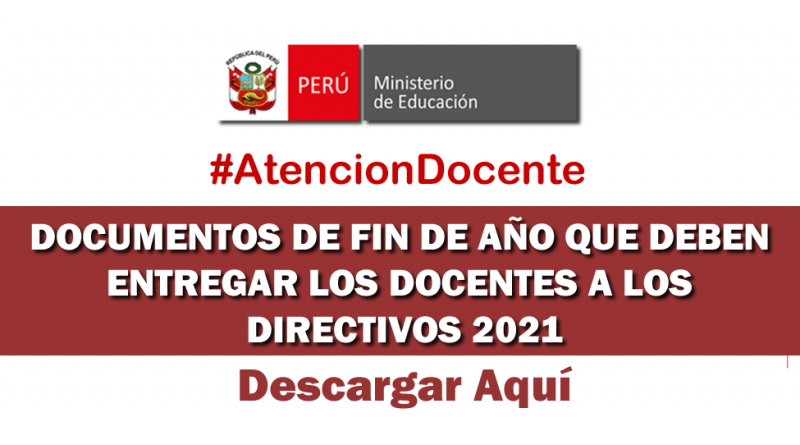 DOCUMENTOS DE FIN DE AÑO QUE DEBEN ENTREGAR LOS DOCENTES A LOS DIRECTIVOS 2021