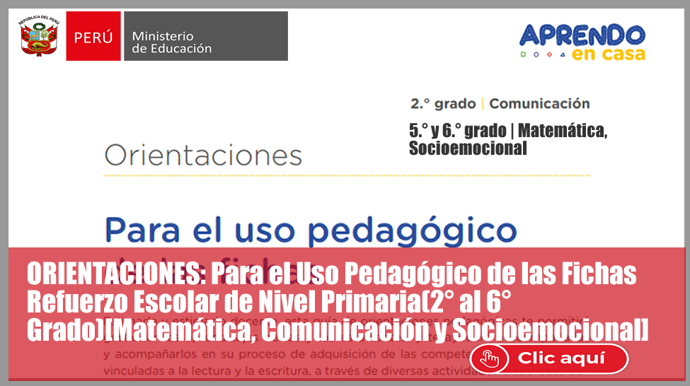 ORIENTACIONES: Para el Uso Pedagógico de las Fichas Refuerzo Escolar de Nivel Primaria 2° al 6° Grado [Matemática, Comunicación y Socioemocional][Descarga Aquí] -2022