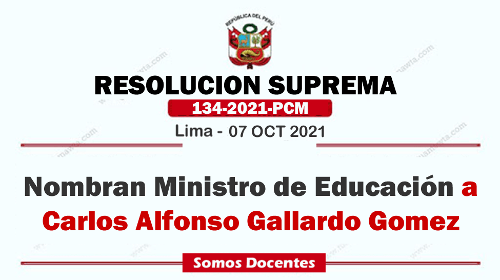 Nombran Ministro de Educación al señor Carlos Alfonso Gallardo Gomez. [R. SUPREMA Nº 134-2021-PCM]