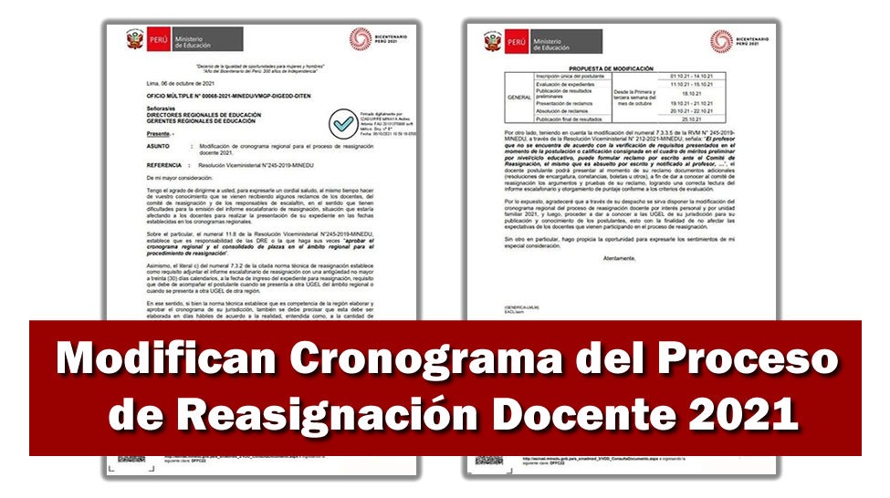 ActualidadCarrera Docente Modifican Cronograma del Proceso de Reasignación Docente a Nivel Nacional PROFE VIRTUAL 8 octubre, 2021 MODIFICAN CRONOGRAMA DEL PROCESO DE REASIGNACIÓN DOCENTE A NIVEL NACIONAL.