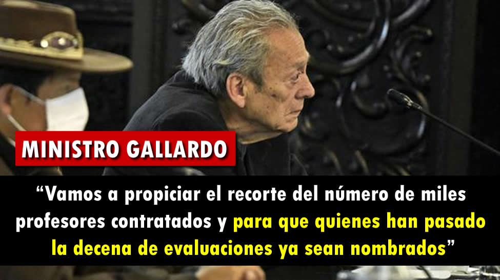 Ministro Gallardo: «Vamos a propiciar el recorte del número de miles profesores contratados y para que quienes han pasado la decena de evaluaciones ya sean nombrados»