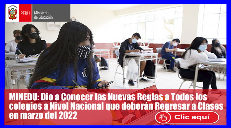 MINEDU: Dio a Conocer las Nuevas Reglas a Todos los colegios a Nivel Nacional que deberán Regresar a Clases en marzo del 2022 [Conócelo Aquí]