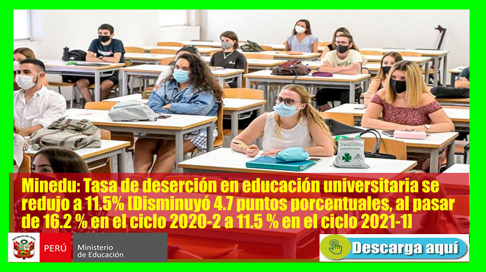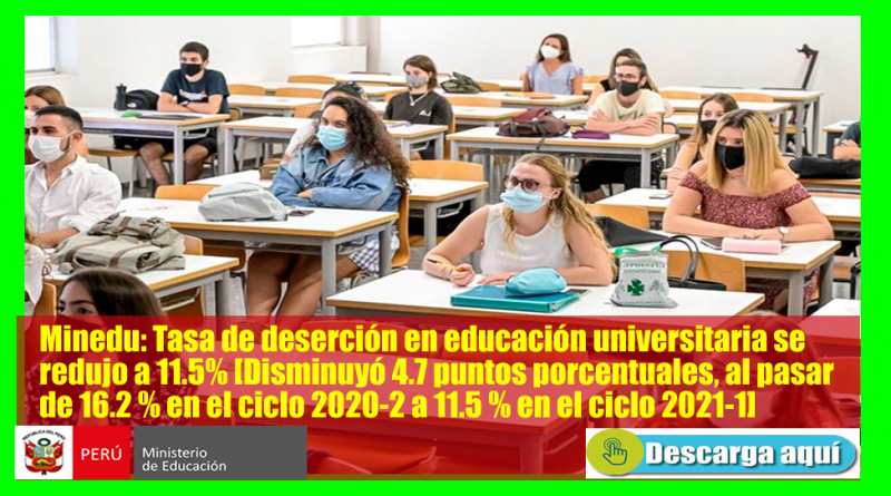 Minedu: Tasa de deserción en educación universitaria se redujo a 11.5% [Disminuyó 4.7 puntos porcentuales, al pasar de 16.2 % en el ciclo 2020-2 a 11.5 % en el ciclo 2021-1][Infórmate Aquí]