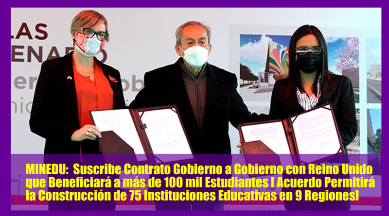MINEDU: Suscribe Contrato Gobierno a Gobierno con Reino Unido que Beneficiará a más de 100 mil Estudiantes [ Acuerdo Permitirá la Construcción de 75 Instituciones Educativas en 9 Regiones][Mas Información Aquí]