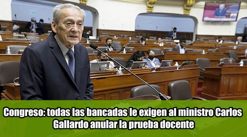 Congreso: todas las bancadas le exigen al ministro Carlos Gallardo anular la prueba docente