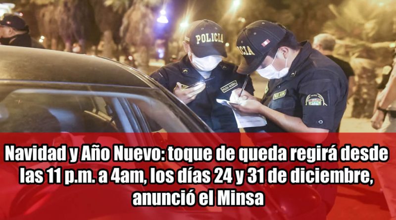 Navidad y Año Nuevo: toque de queda regirá desde las 11 p.m. a 4am, los días 24 y 31 de diciembre, anunció el Minsa