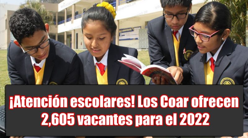 ¡Atención escolares! Los Coar ofrecen 2,605 vacantes para el 2022