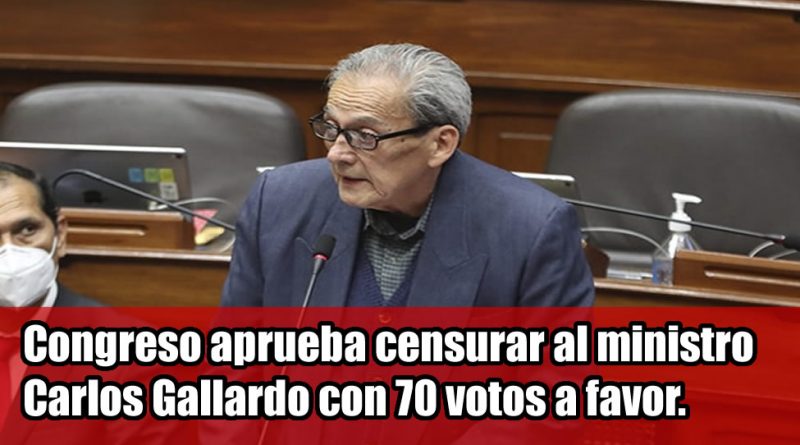 Congreso aprueba censurar al ministro Carlos Gallardo con 70 votos a favor.