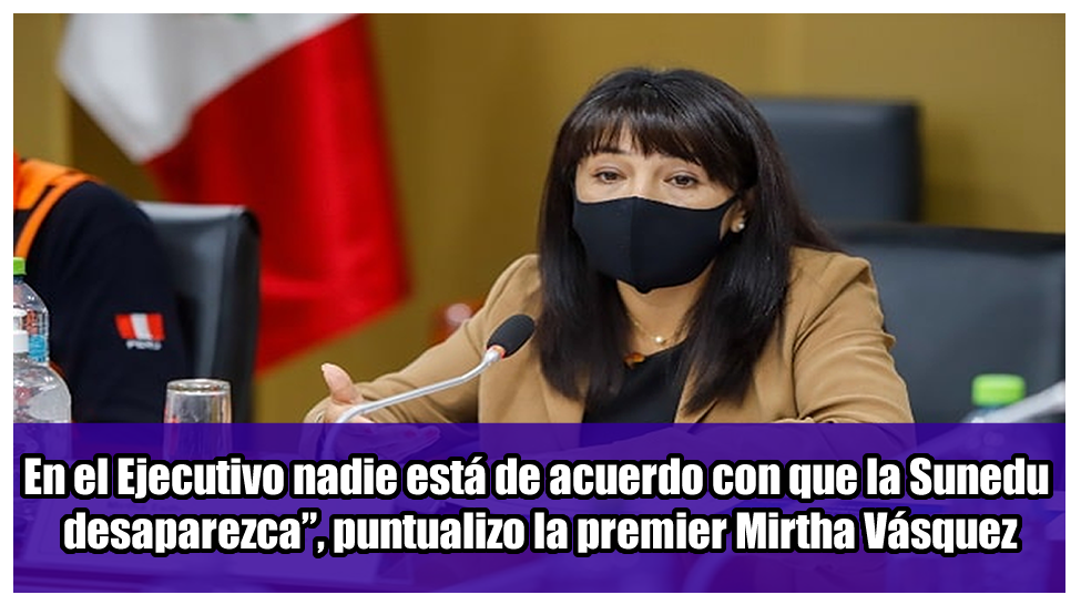 La presidenta del Consejo de Ministros, Mirtha Vásquez, afirmó que ningún integrante del Ejecutivo está de acuerdo con la eliminación de la Superintendencia Nacional de Educación Superior Universitaria (Sunedu), por lo que lamentó que las contrarreformas del tema educativo provengan del Congreso. En declaraciones , la premier remarcó que la Sunedu ha cumplido un rol importante para la educación universitaria en estos últimos años. Aunque dijo que se deben hacer “algunos ajustes”, insistió en que “nadie quiere” que este organismo desaparezca.