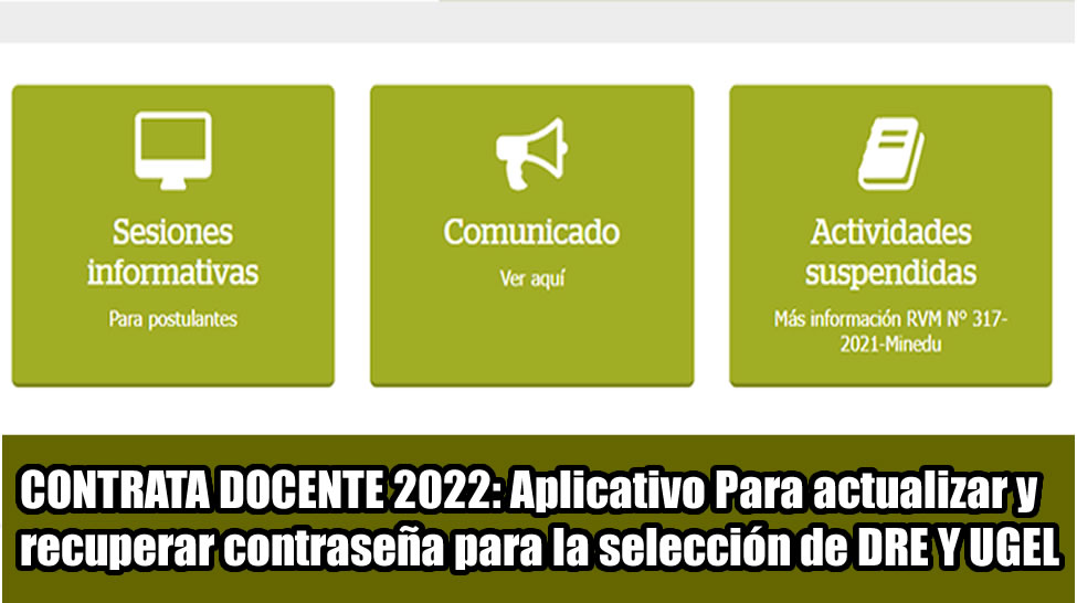 CONTRATA DOCENTE 2022: Aplicativo Para actualizar y recuperar contraseña para la selección de DRE Y UGEL