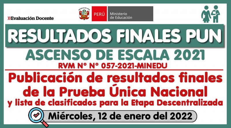 ASCENSO 2021: RESULTADOS FINALES DE LA PRUEBA ÚNICA NACIONAL Y LISTA DE CLASIFICADOS PARA LA ETAPA DESCENTRALIZADA (Miércoles, 12 de enero del 2022)