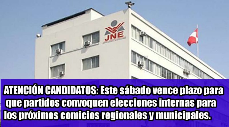 El Jurado Nacional de Elecciones (JNE) recordó a las organizaciones políticas que este sábado 22 vencerá el plazo para que convoquen elecciones internas, a fin de elegir a los candidatos que los representarán en los comicios regionales y municipales del 2022.